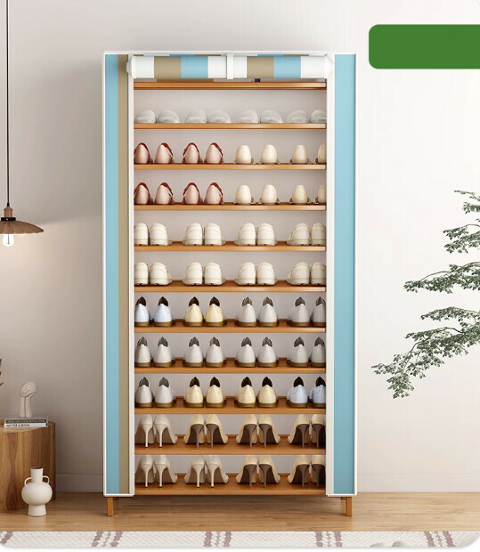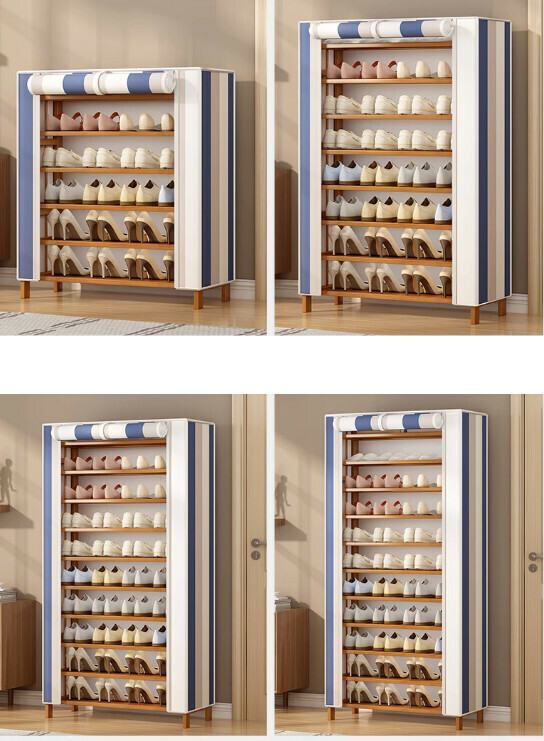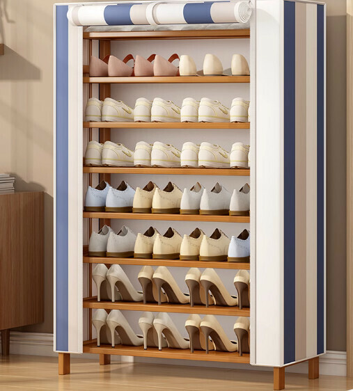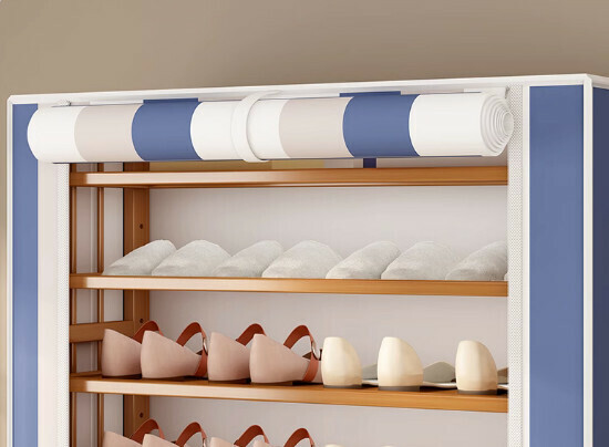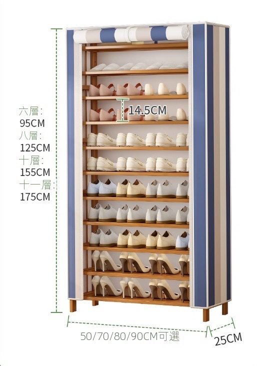 新款防塵鞋架(藍色條紋)(8層-長80cm)