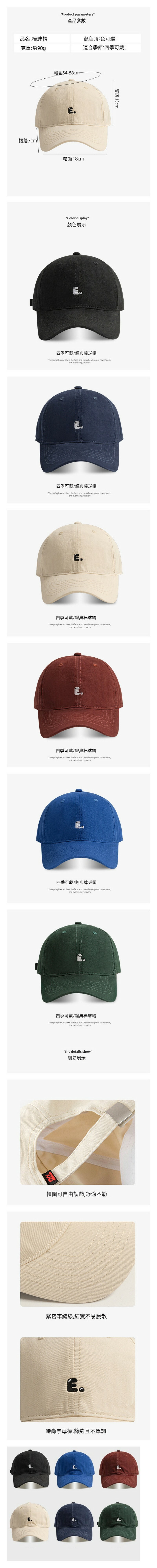 新款E字母刺繡軟頂鴨舌帽(349棗紅色)
