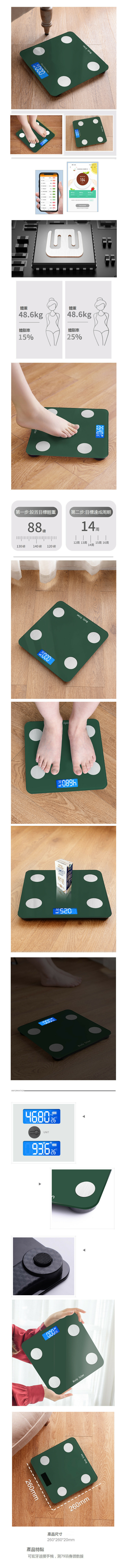 新款體重電子秤智能體脂秤【綠色】(尺寸:26*26cm-充電款-金屬片)