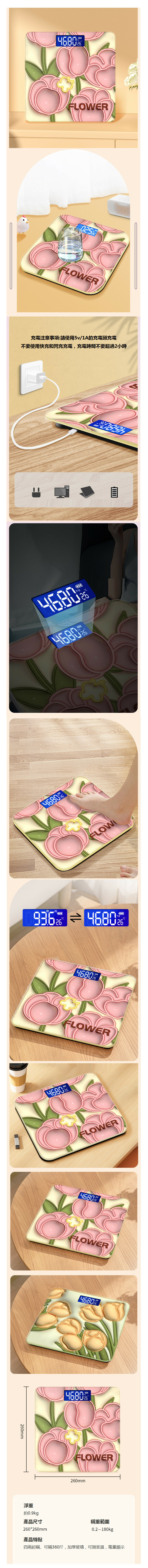 新款體重電子秤【粉鬱金香】(尺寸:26*26cm-電池款)