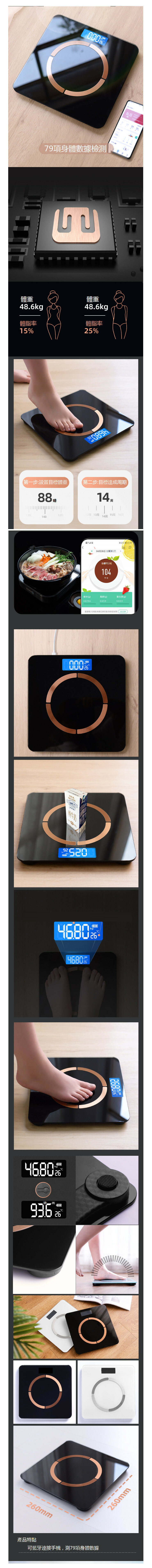 新款體重電子秤智能藍牙體脂秤【絲印圈-白色】(尺寸:26*26cm-電池款)
