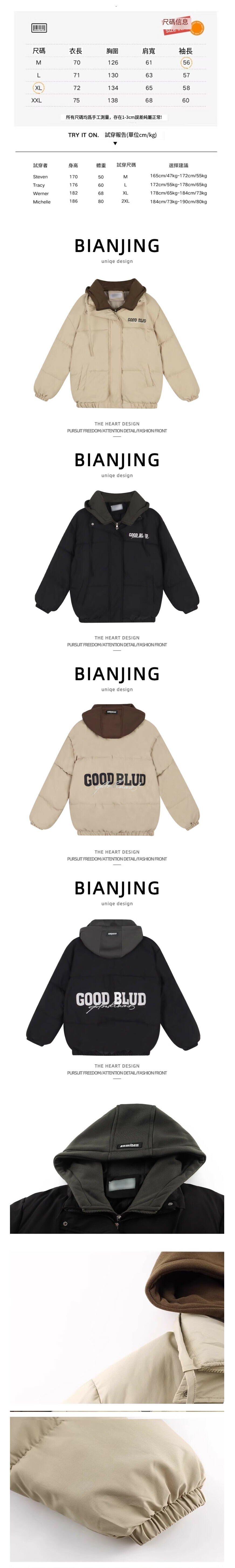 新款假兩件連帽保暖棉衣外套【黑色】(尺碼:S-2XL碼) (下單後請聯絡客服確認發貨尺碼)