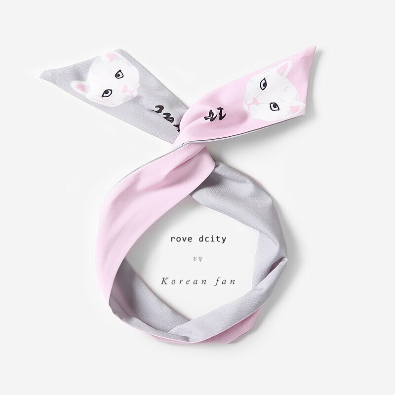 新款時尚髮箍頭飾 頭箍(粉+灰-貓臉)