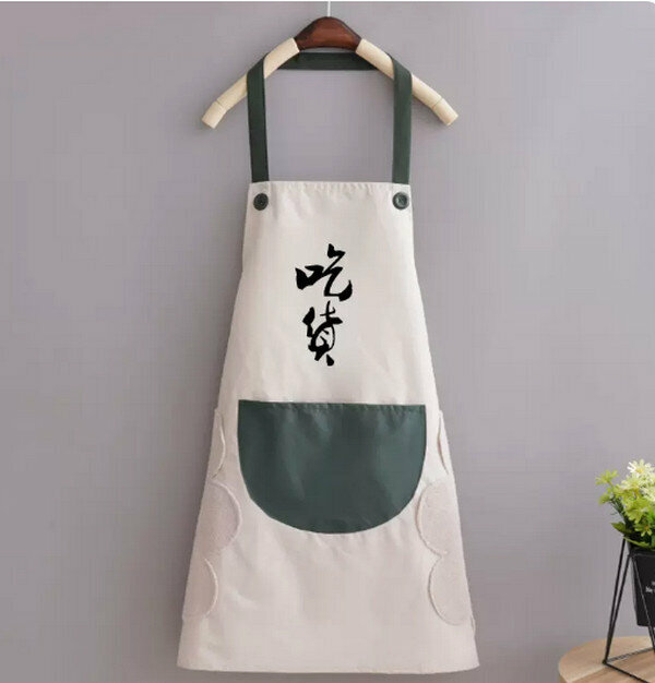 新款時尚防油圍裙-擦手防水掛脖灰配綠書法吃貨