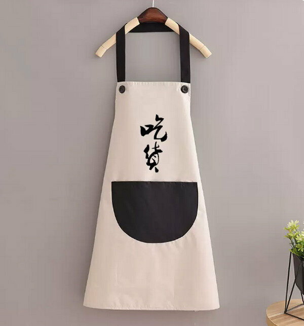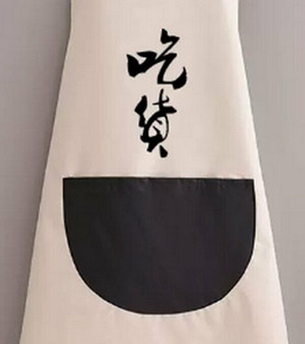 新款時尚防油圍裙-防水掛脖灰配黑書法吃貨