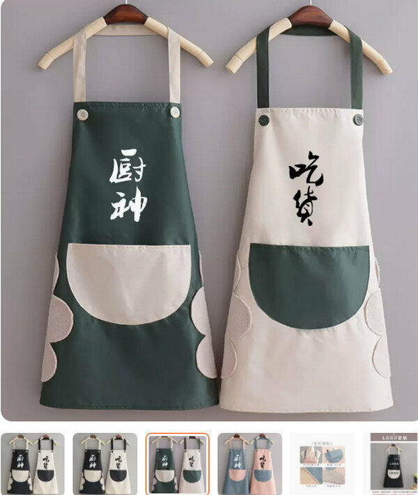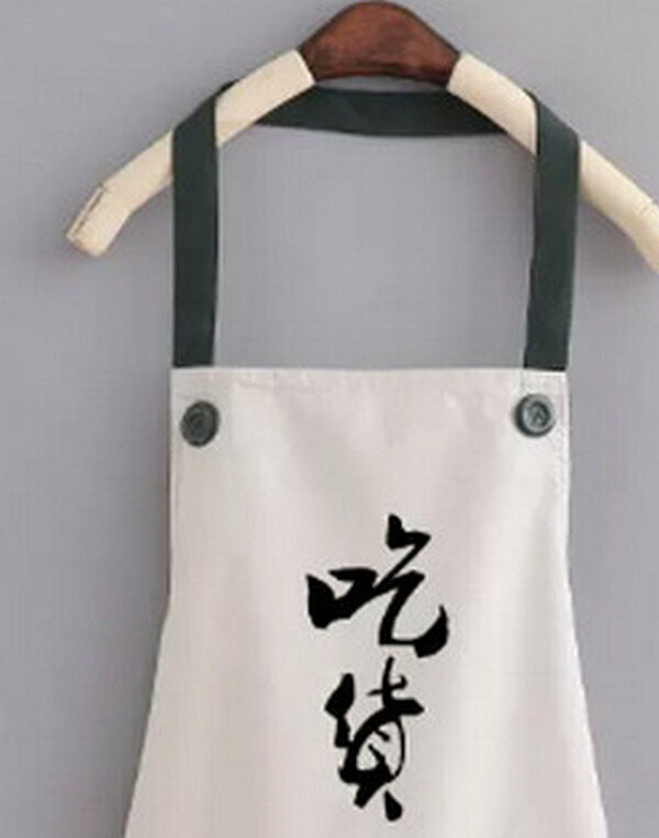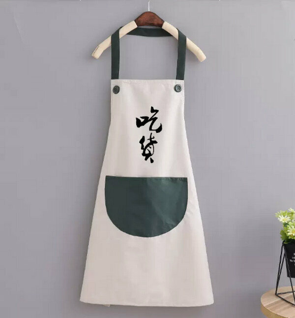 新款時尚防油圍裙-防水掛脖灰配綠書法吃貨