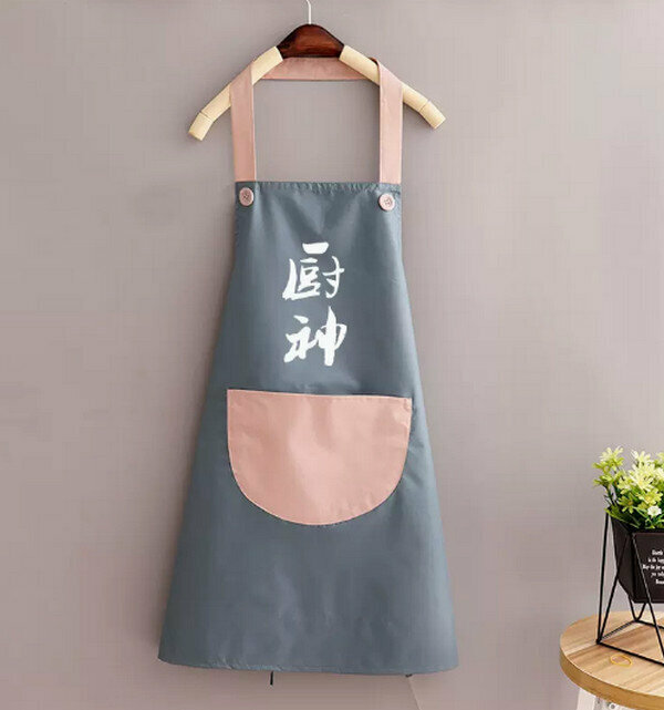 新款時尚防油圍裙-防水掛脖藍配粉書法廚神