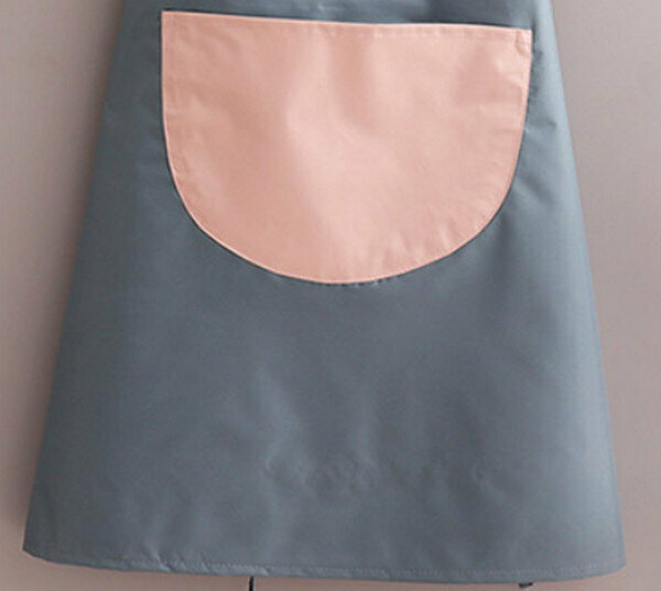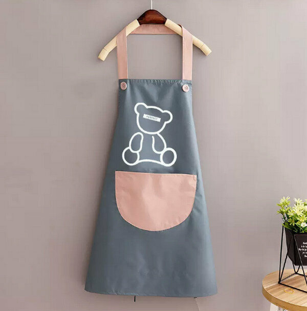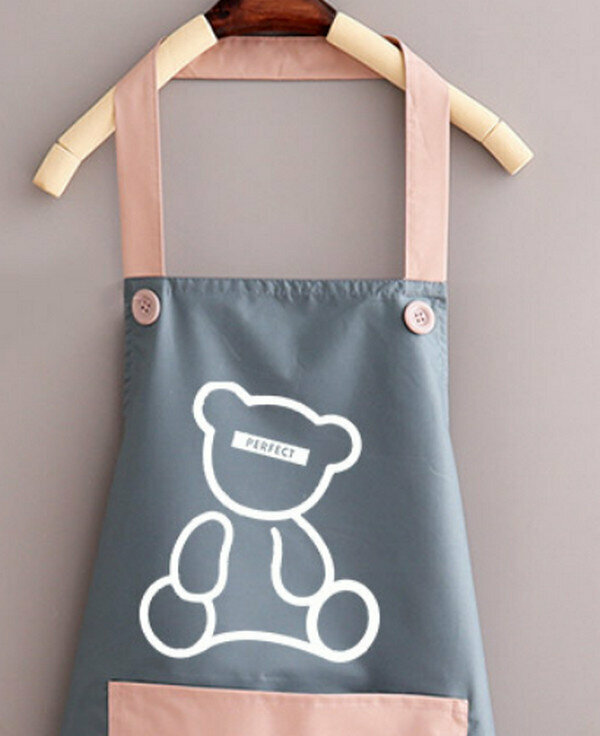 新款時尚防油圍裙-防水掛脖藍配粉白線熊