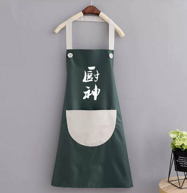 新款時尚防油圍裙-防水掛脖綠配灰書法廚神