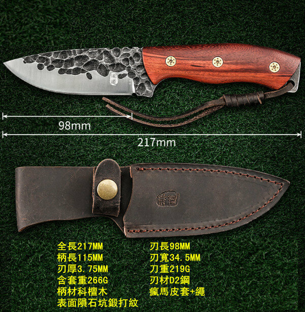 新款火牛D2直刀【D-259】科檀木柄-總長217mm