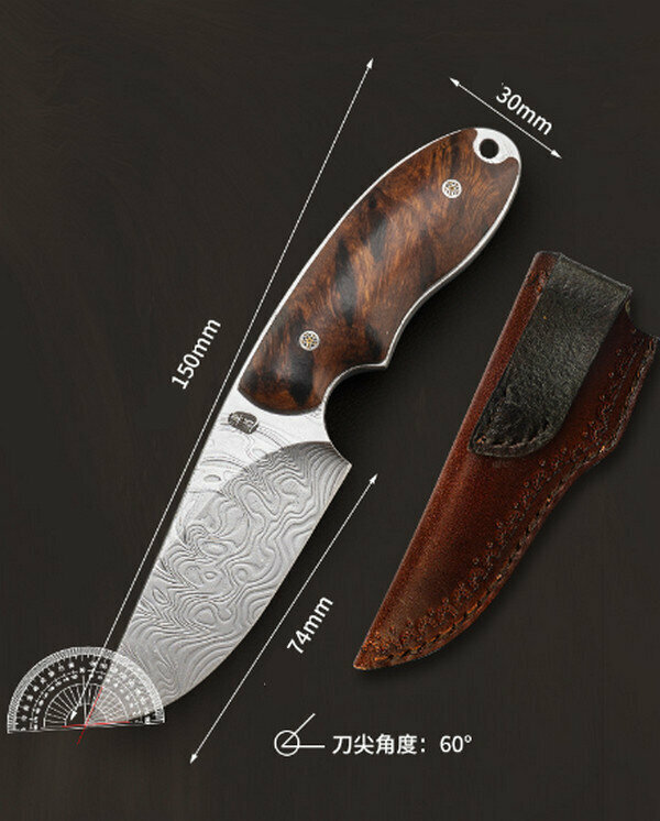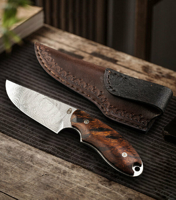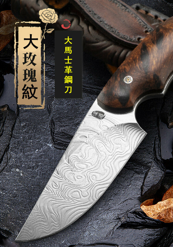 新款火玫瑰手工刀【DM-026】-沙漠鐵木手柄-全長150mm