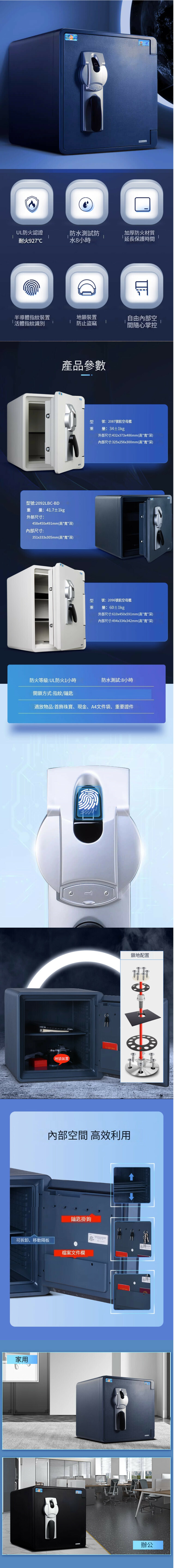新款防火防水家用小型夾萬(高43.2cm藍色防火防水-指紋開啟)