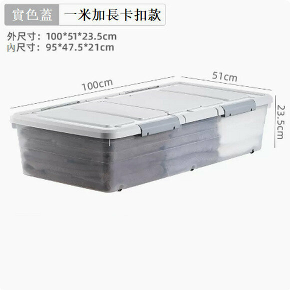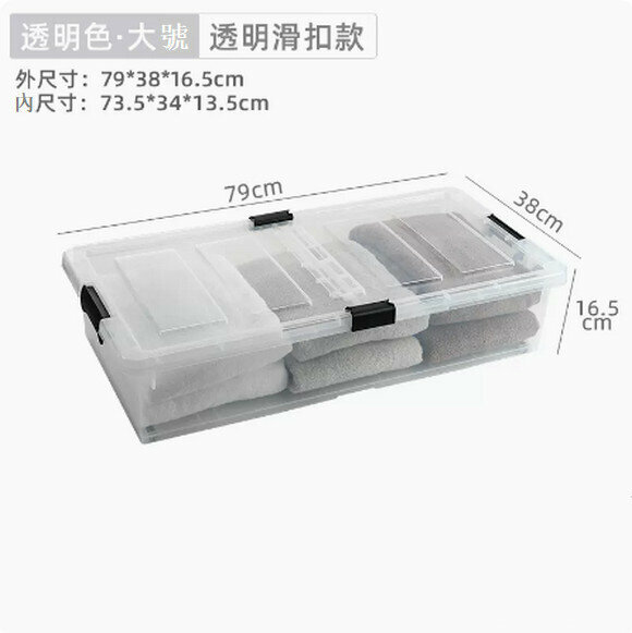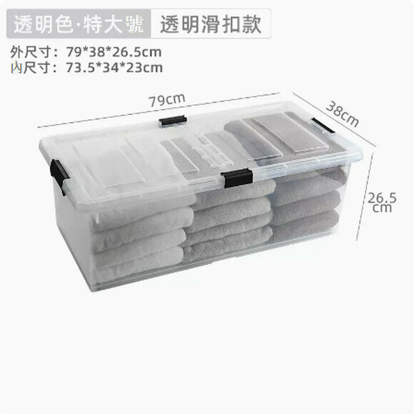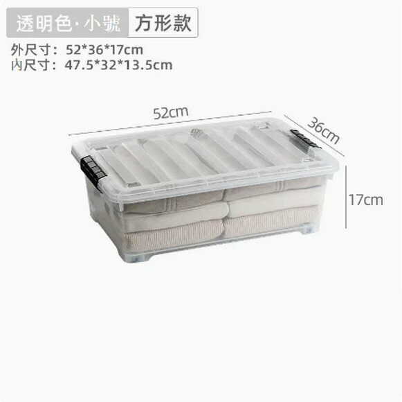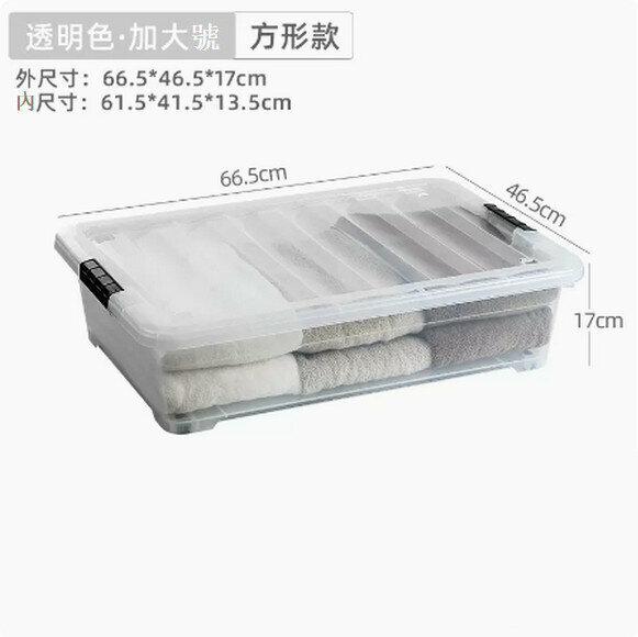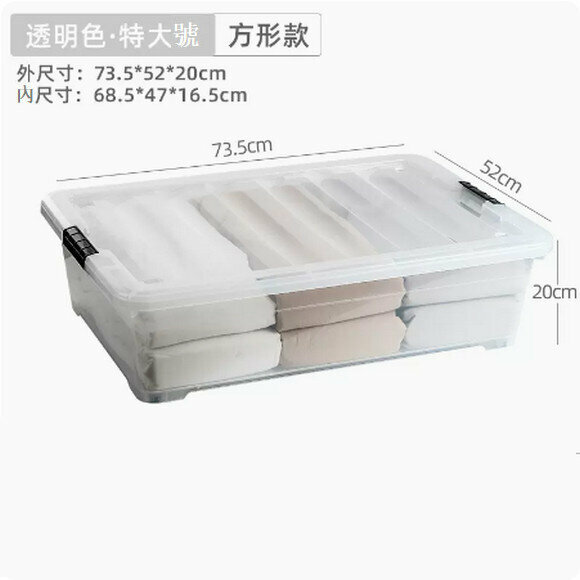 新款扁平帶輪塑膠床下收納盒【透明方形款特大號73.5*52*20cm】