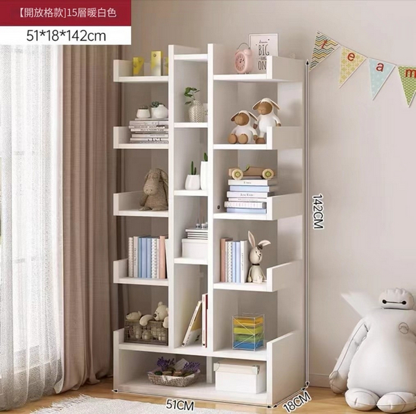 新款落地簡易書架置物架小型書櫃 儲物架(【開放格款】15層暖白色)