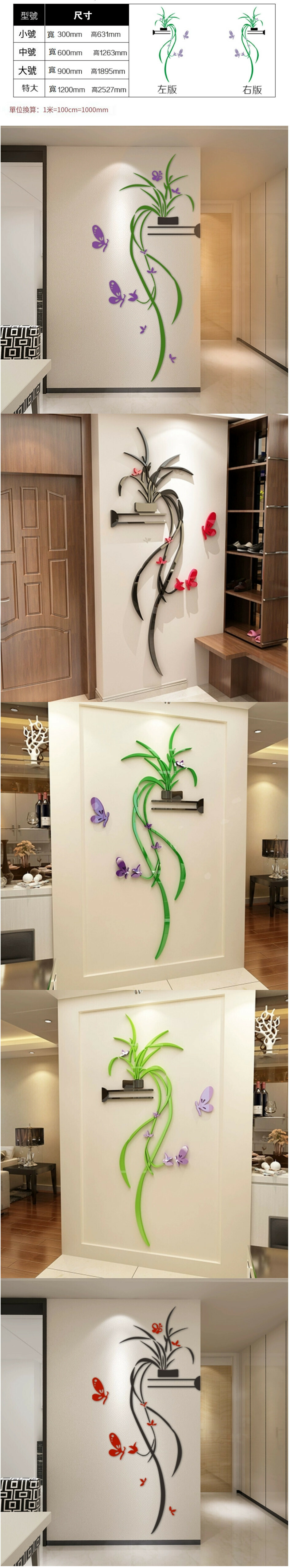 新款花草吊蘭牆貼【吊蘭黑葉+大紅碟+黑盆-左版】尺寸【特大】