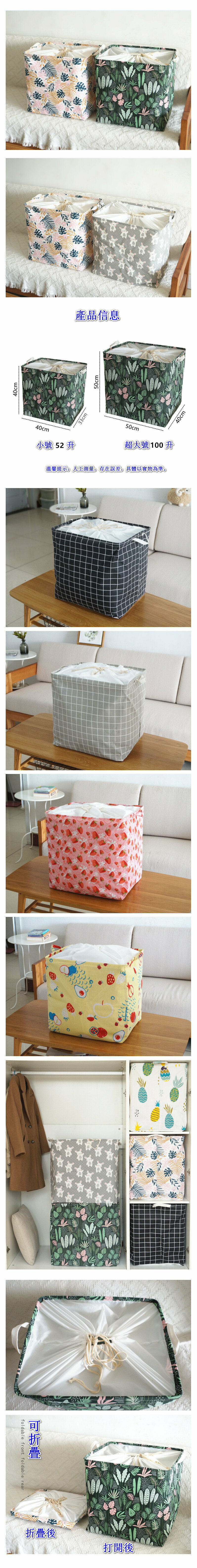 新款可折疊抽繩束口髒衣籃收納袋【繽紛樹葉100升】【規格:50*50*40cm】