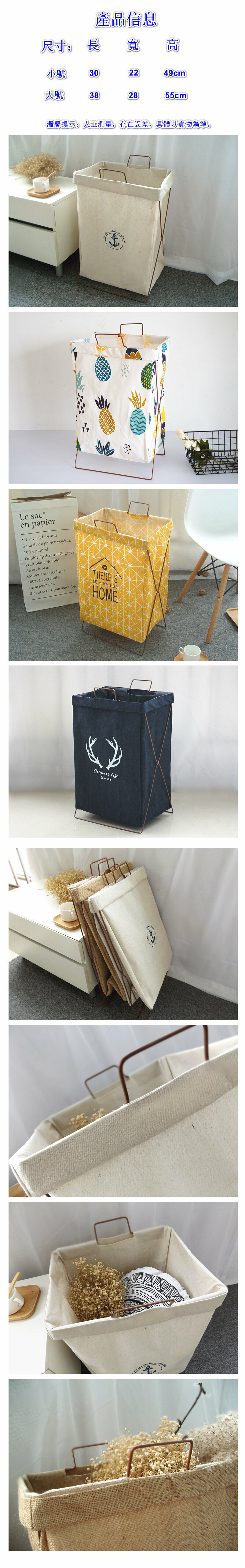 新款可折疊鐵架布藝髒衣籃【卡其色小號原色】【規格:49*30*22cm】