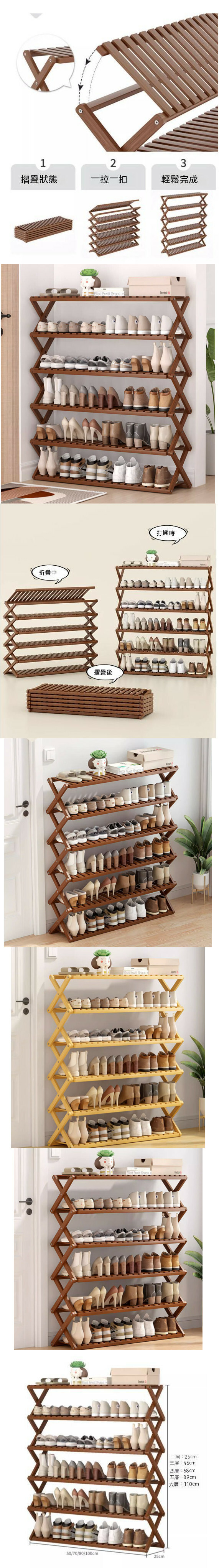 新款可折疊鞋架(茶色)(6層-長70cm)