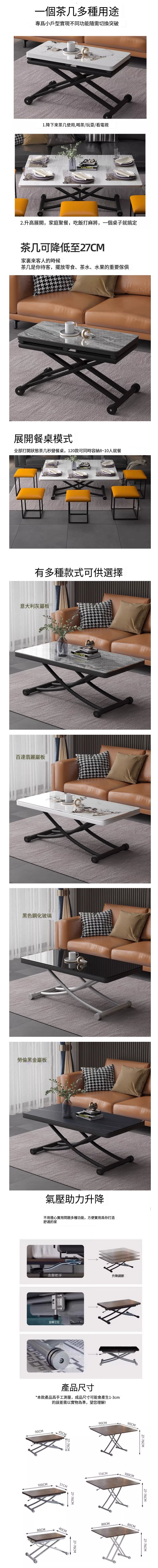 新款摺疊升降茶几變飯桌化妝桌電視櫃電腦桌(岩板+馬薩黑+啞光岩板)100x57cm
