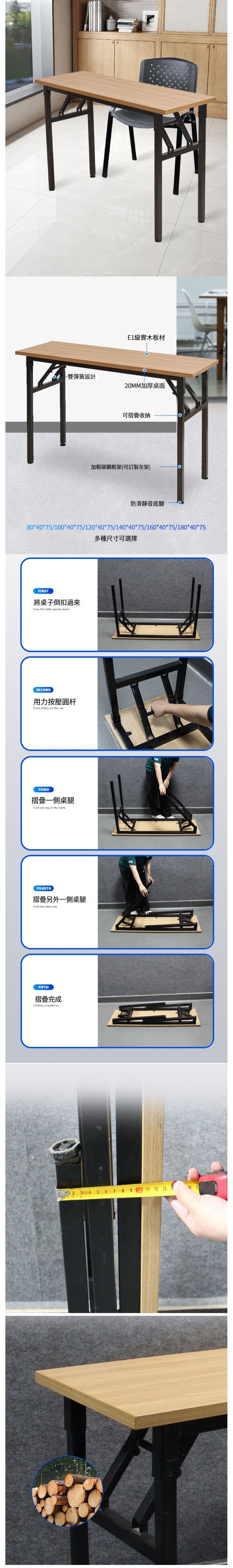 新款摺疊培訓桌可自由組合拼接辦公桌(木紋色+置物架)160x40x75cm