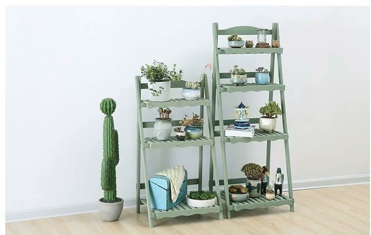 新款折疊梯形花架子(三層 咖啡色 長75CM,寬35CM,高92CM)
