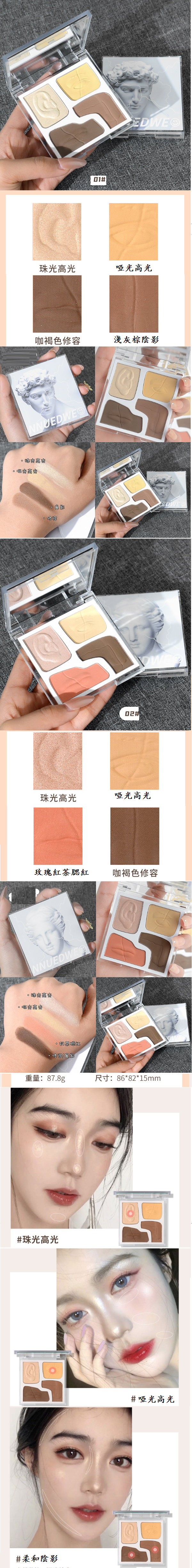 新款四色修容盤套裝(2#維納斯腮紅盤+修容刷+鼻影刷)