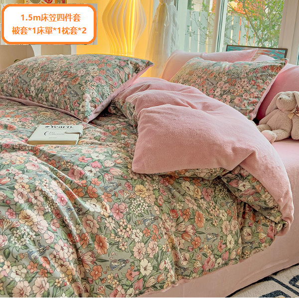 新款床上用品四件套(多姿多彩【100%純棉+高密牛奶絨】)(尺寸1.5m床笠四件套)