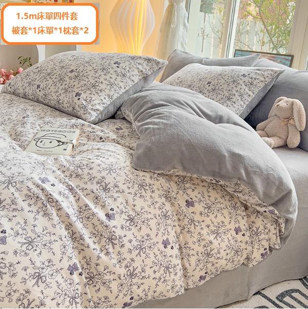 新款床上用品四件套(笙歌【100%純棉+高密牛奶絨】)(尺寸1.5m床單四件套)