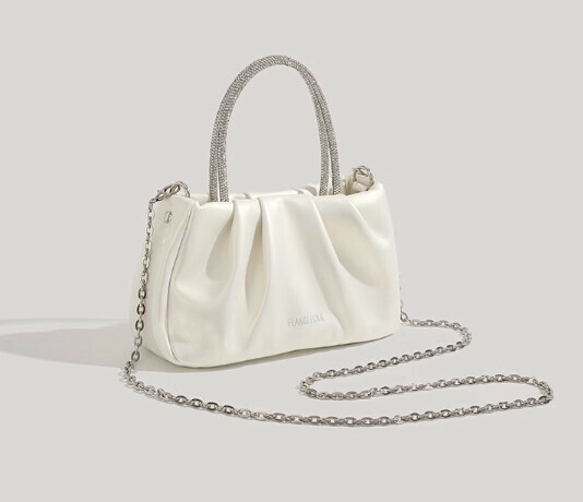 新款法式鏈條雲朵手提斜挎包(珍珠白)