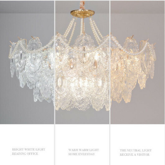 新款法式玻璃吊燈(橢圓80cm兩層-LED三色變光)