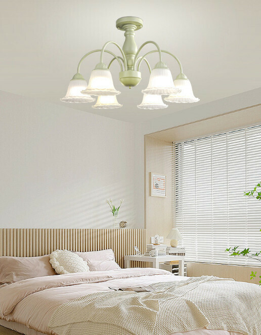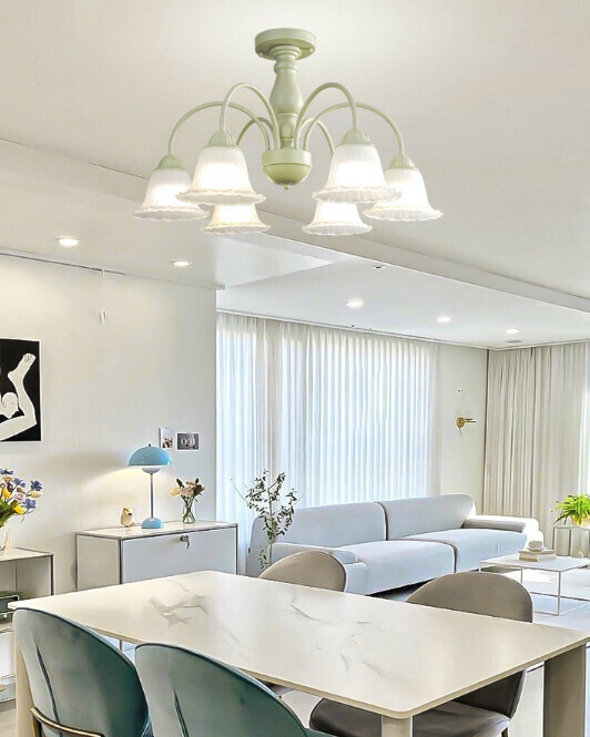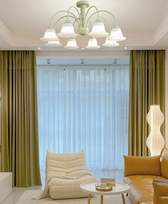 新款法式田園復古吊燈(8頭-米色+白色玻璃)【LED三色變光】