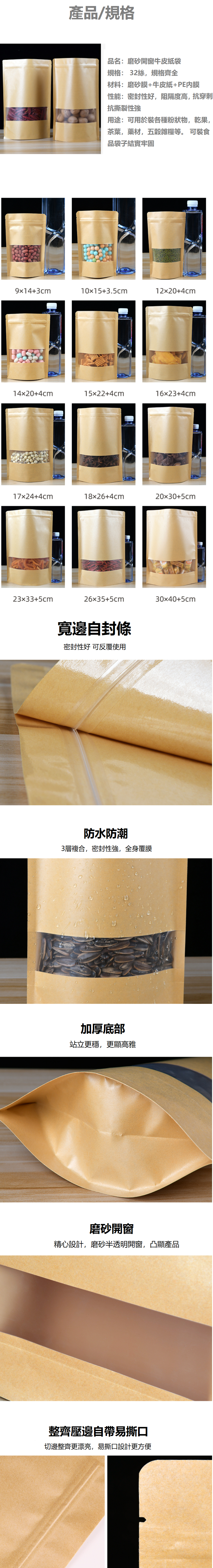新款磨砂自封牛皮包裝紙(32絲 20*30+5CM 100個)