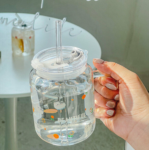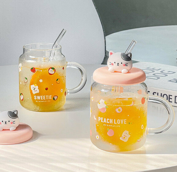 新款玻璃杯【401-500ml】【B款(貓貓蓋子)】