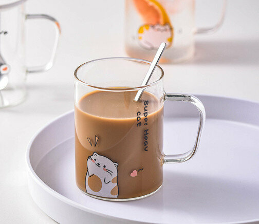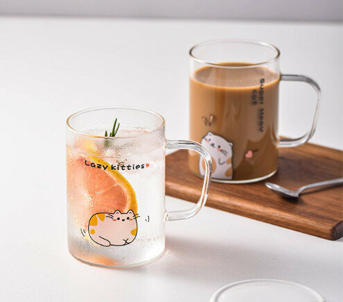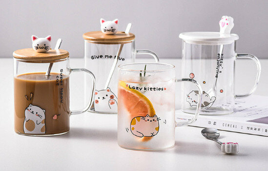 新款玻璃杯【401-500ml】【揮手貓咪三件套(彩盒裝)】