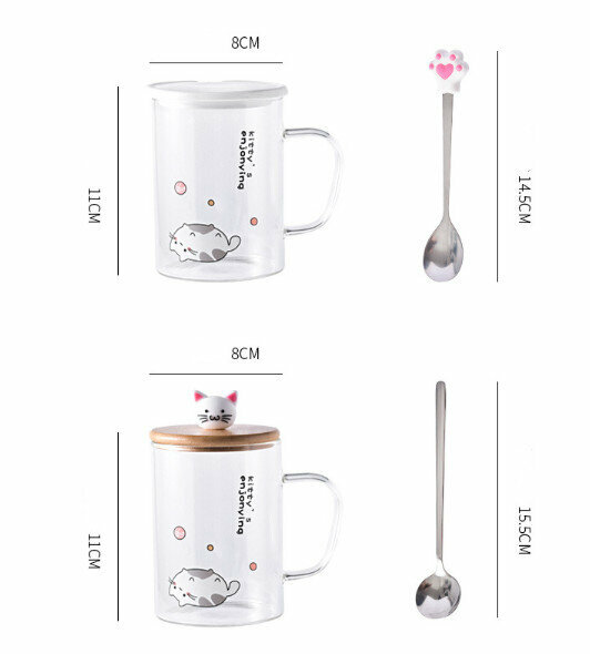 新款玻璃杯【401-500ml】【黃色貓咪三件套(彩盒裝)】