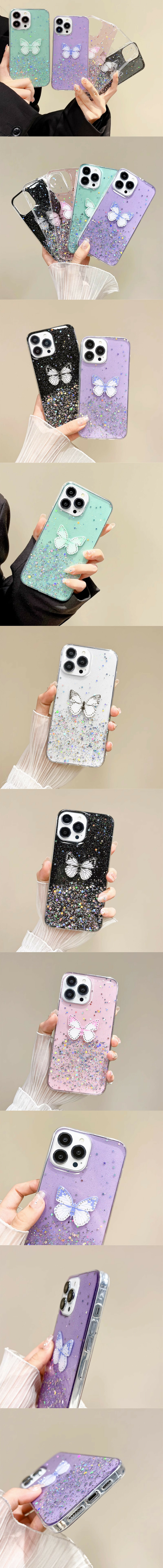 新款漸變水鑽蝴蝶適用iphone手機殼【紫色星空閃粉+漸變水鑽蝴蝶】【下單后聯絡客服確認手機型號】
