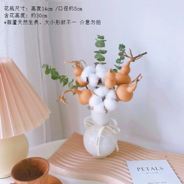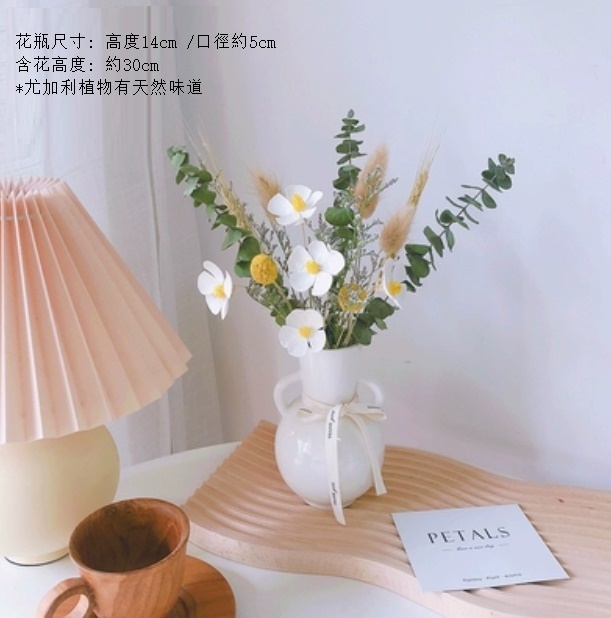 新款滿天星幹花花束(雙耳花瓶 拉毛果尤加利)