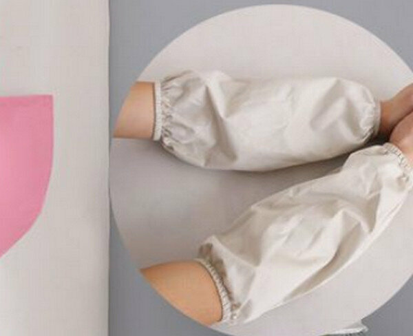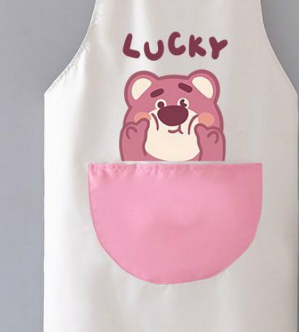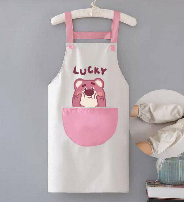 新款H背帶防水草莓熊灰配粉可愛圍裙+套袖