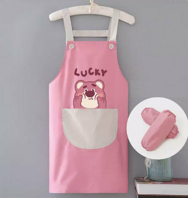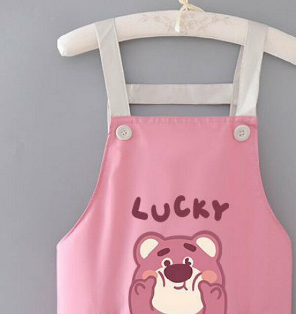 新款H背帶防水草莓熊粉配灰可愛圍裙+套袖