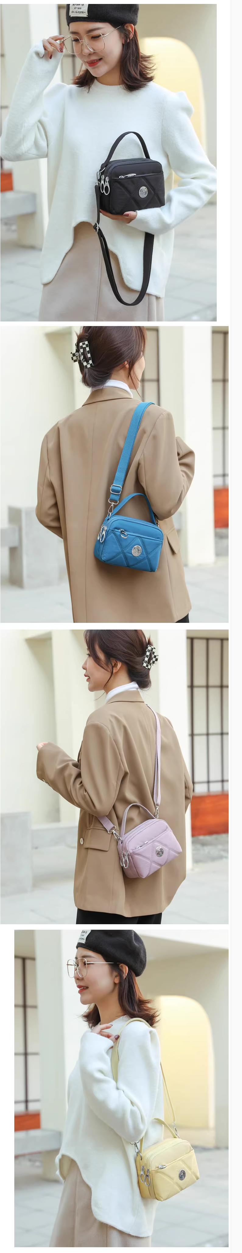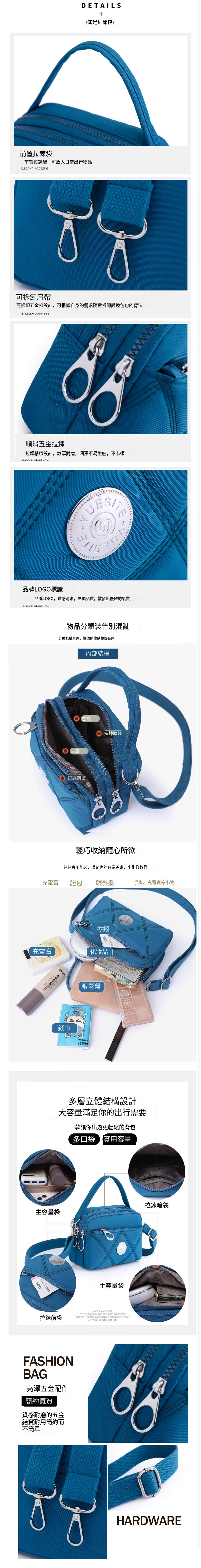 新款手提單肩斜挎包 時尚尼龍牛津布 多層拉鍊 媽媽包 小包包【郵藍】