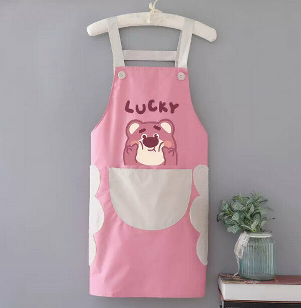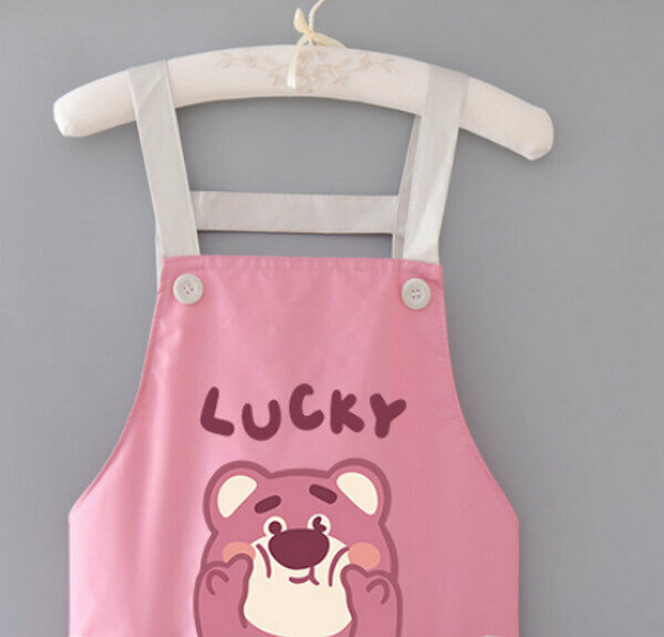 新款擦手H背帶防水草莓熊粉配灰可愛圍裙