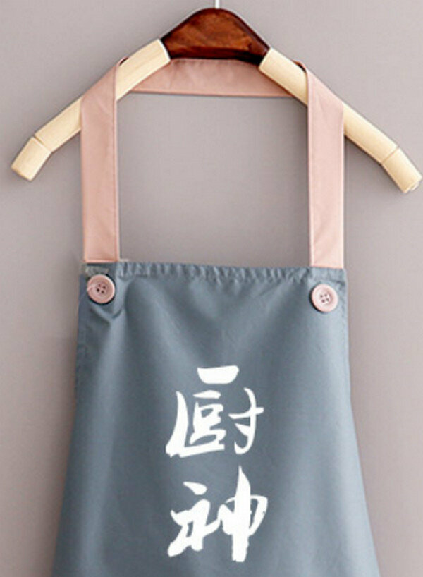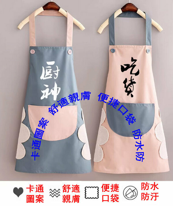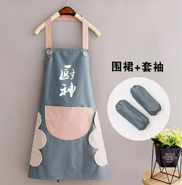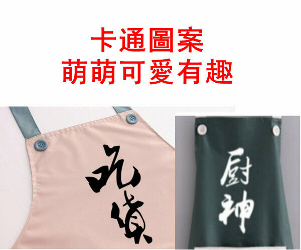 新款擦手掛脖藍配粉書法廚神圍裙+套袖
