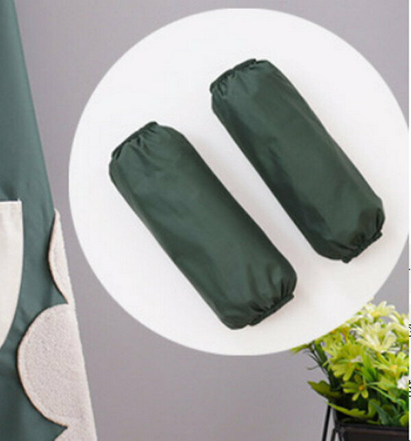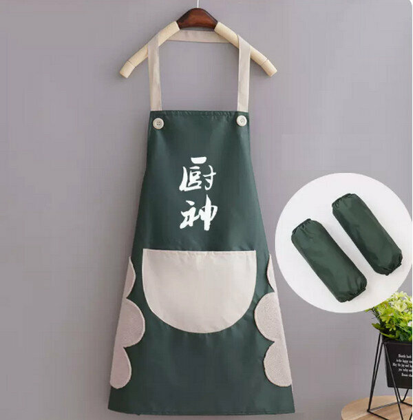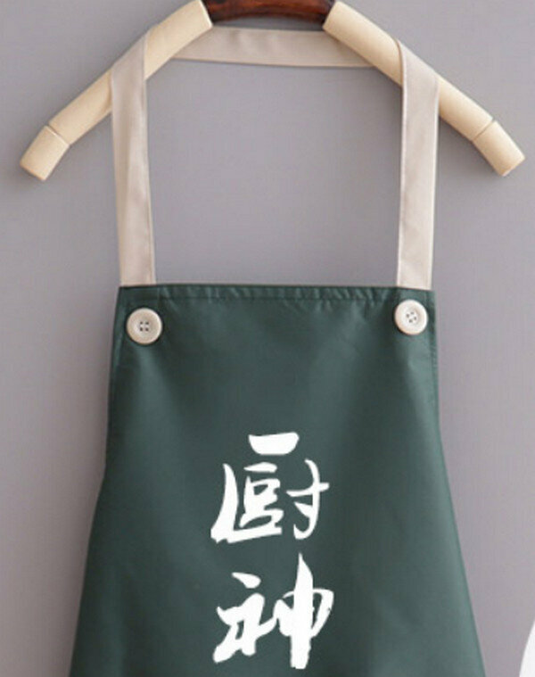 新款擦手掛脖綠配灰書法廚神圍裙+套袖