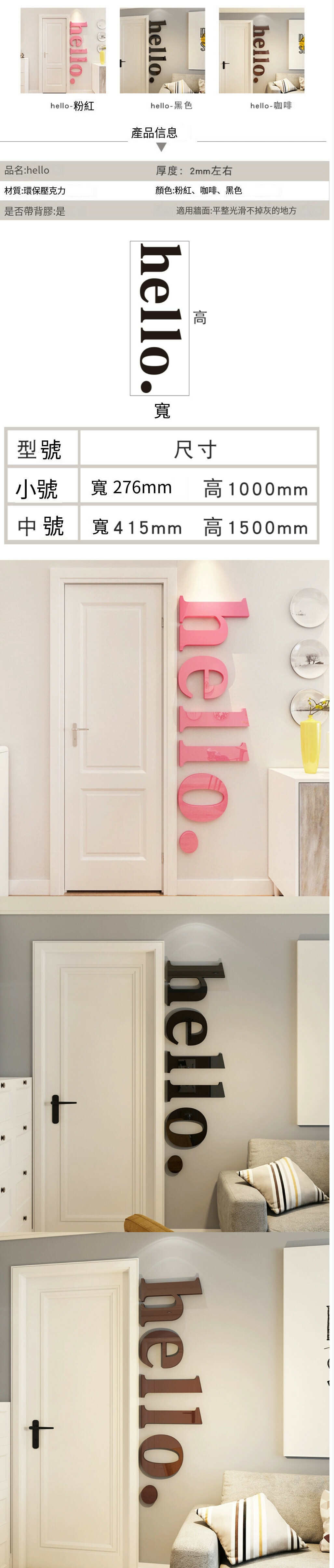 新款hello3d立體牆貼【粉色】尺寸【中】