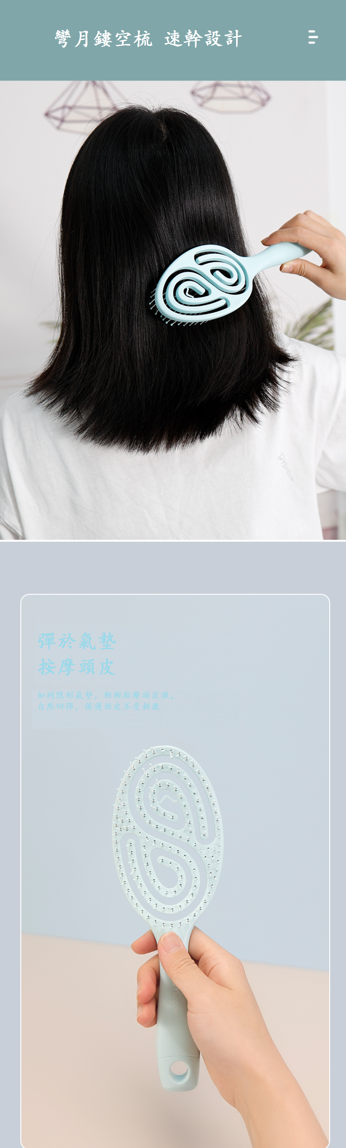 新款鏤空按摩梳(水蔚藍色(彎月鏤空梳(送清潔爪)))
