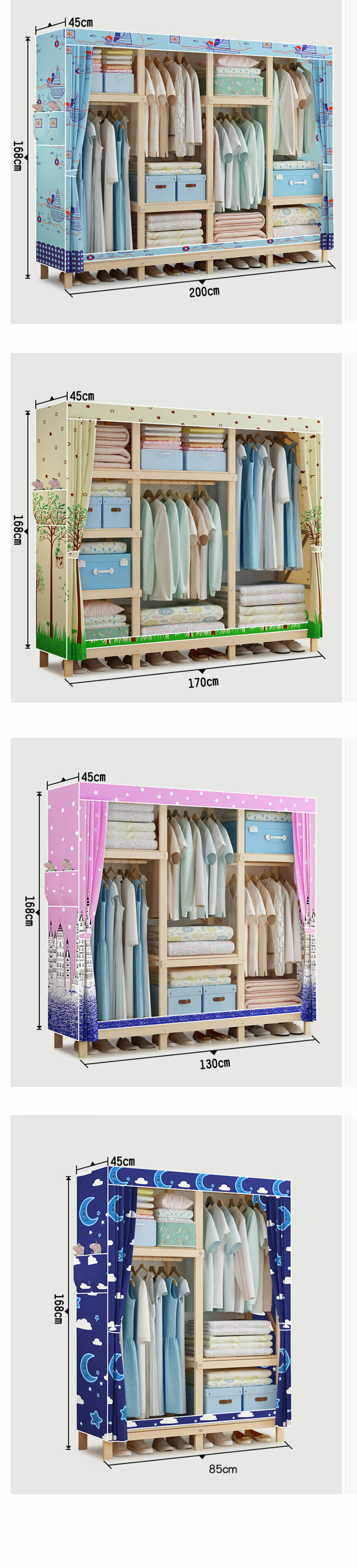 新款家用組裝收納布衣櫃( DM200款皇冠色(長200*深45*高168cm)無門)
