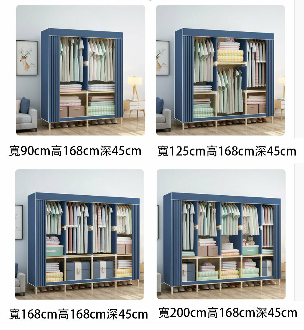 新款家用組裝收納布衣櫃(LM200款藍灰色(長200*深45*高168cm)無門)