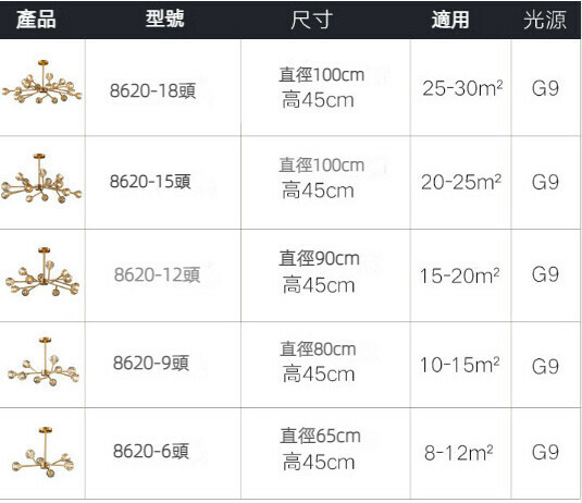 新款家用吊燈【全銅金色-6頭三色光(8#水晶燈罩)】