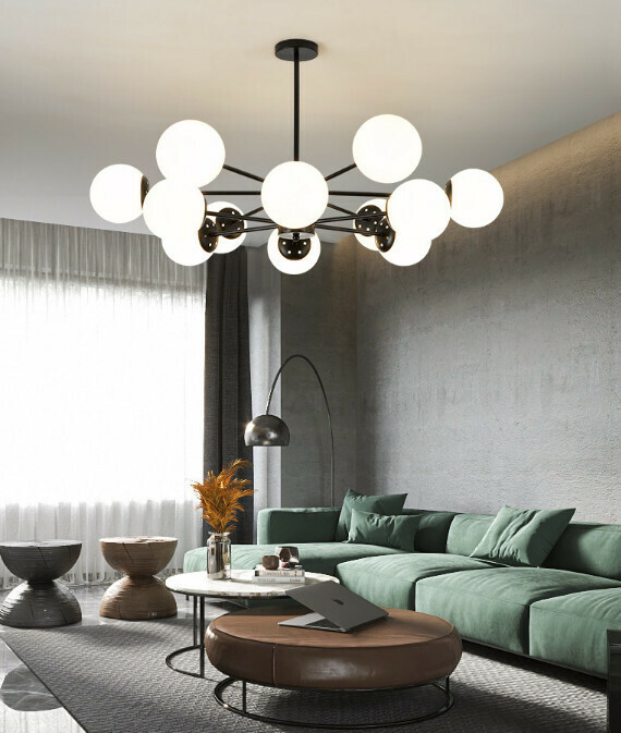 新款家用吊燈(鐵藝金色-12頭三色光)