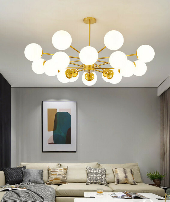 新款家用吊燈(鐵藝金色-8頭三色光)
